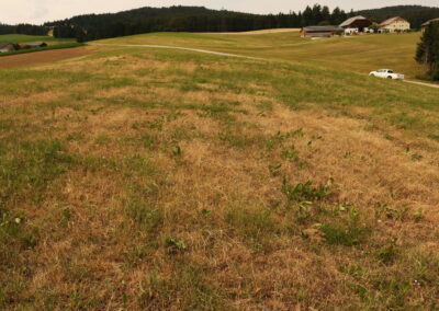 Wenn der Oberboden trocken ist, erreichen flach wurzelnde Arten das Bodenwasser nicht mehr und sterben teilweise ab. Dadurch werden konkurrenzstärkere Arten dominant, was zuerst Pflanzenvielfalt und damit die Futterqualität senkt. In späterer Folge geht durch den Verlust dieser wertvollen Arten auch der Ertrag signifikant zurück.